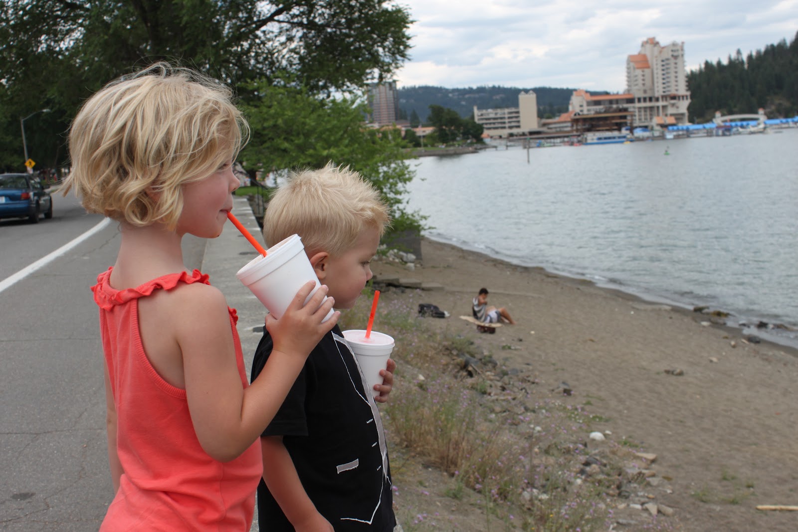 | Splashing in Coeur d'Alene Lake (or as Wyatt said: Coeur d'Lake). |